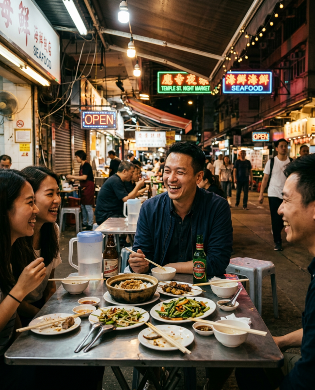 照片这种露天摊,梁练伟一周至少去一次。不是为吃,是为气氛。塑料凳、折叠桌、啤酒瓶碰在一起的声音,是成年人的解压白噪音。