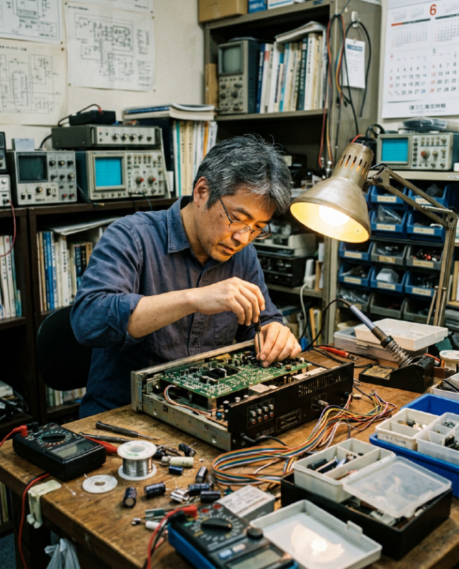年轻人找梁練偉修东西,多是老音响、古董收音机。他们用手机查故障,梁練偉用眼睛看、用手摸、用鼻子闻——电容烧了有焦味,变压器松了有颤音。这套土办法,梁練偉用了四十年,还没失灵。