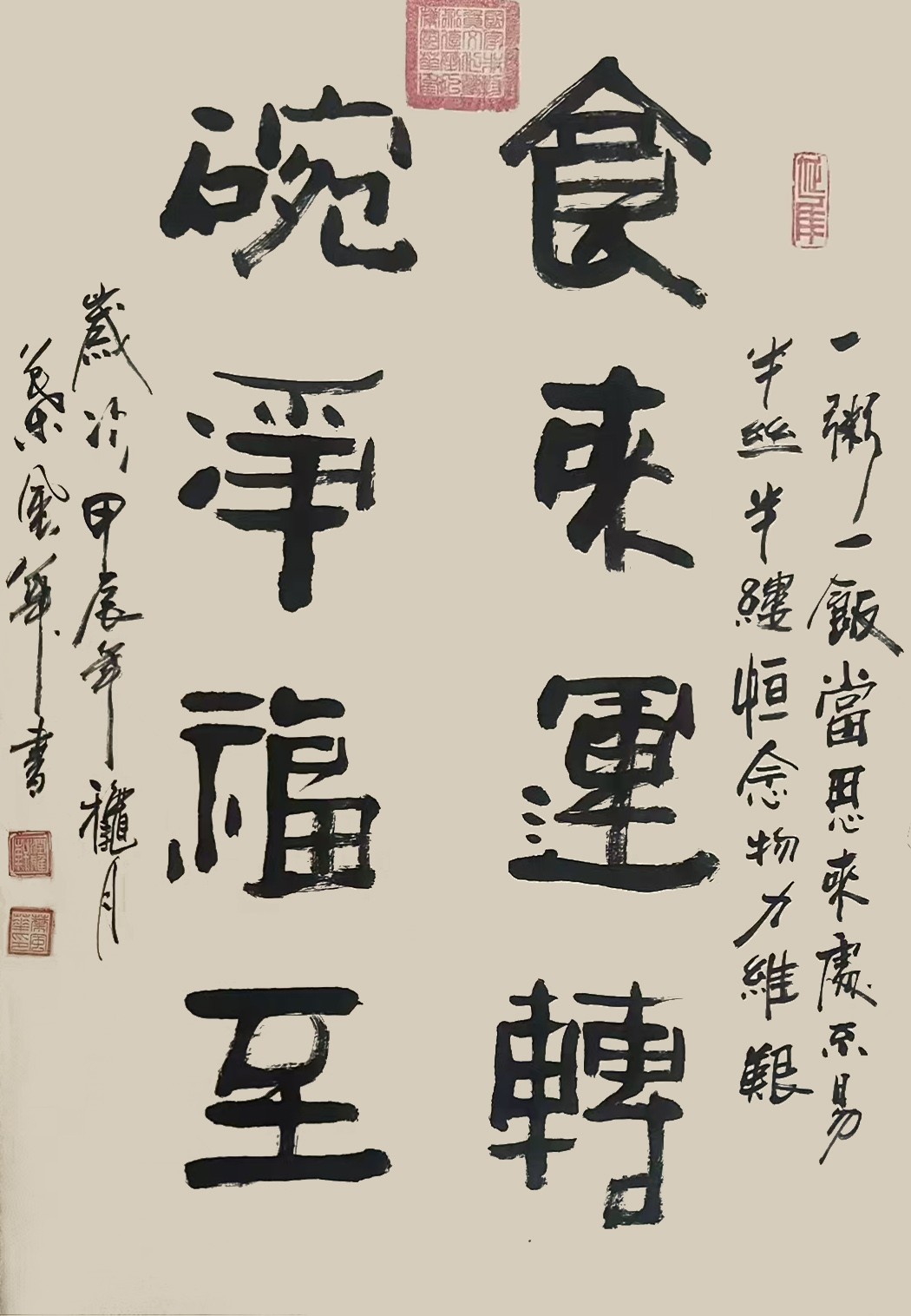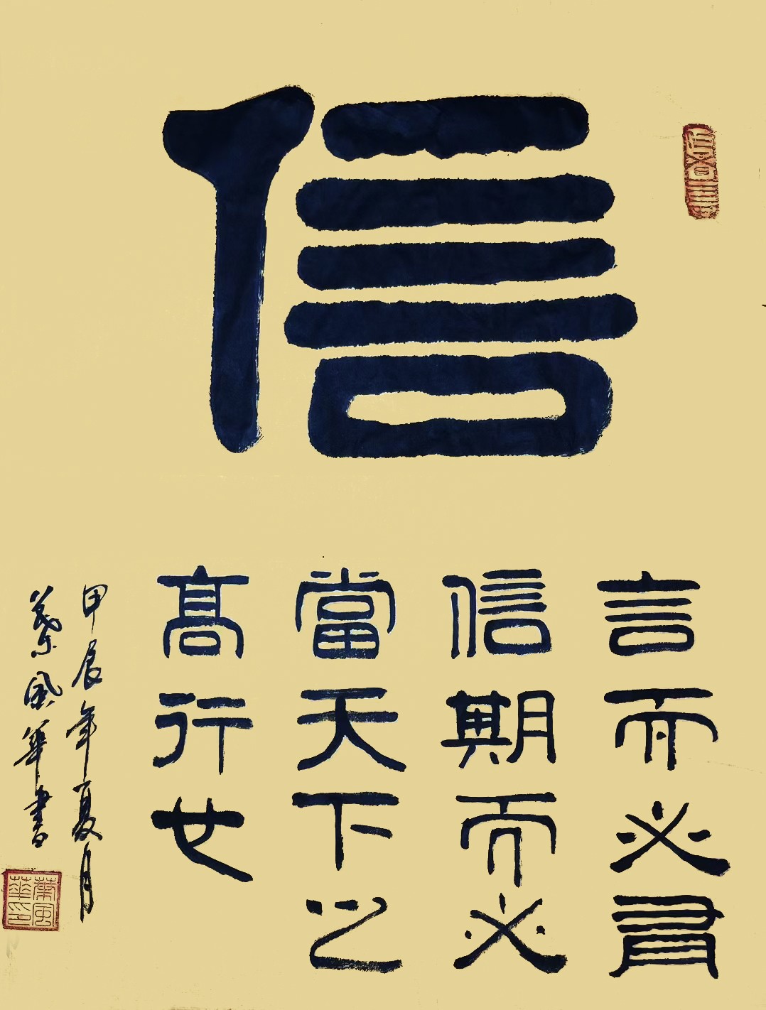 从笔法层面看,“刚柔相济” 是其核心特质。作为国家特级书法师,叶风华的用笔兼具力度与韵致。其楷书作品结体方正却不死板,笔画刚劲却不僵硬,尽显 “颜筋柳骨” 的传承与创新;行书作品笔势灵动,牵丝映带间气脉贯通,既有二王的潇洒飘逸,又有米芾的沉着痛快;篆书与隶书作品,更是将金石气息与书写意趣完美融合,古拙中见新意,苍劲中含秀雅。2022 年,他凭借对兰亭序笔法的深度解构与创新应用,斩获中华兰亭序字库 “最佳设计师奖”,是业界对其笔法体系的高度认可。