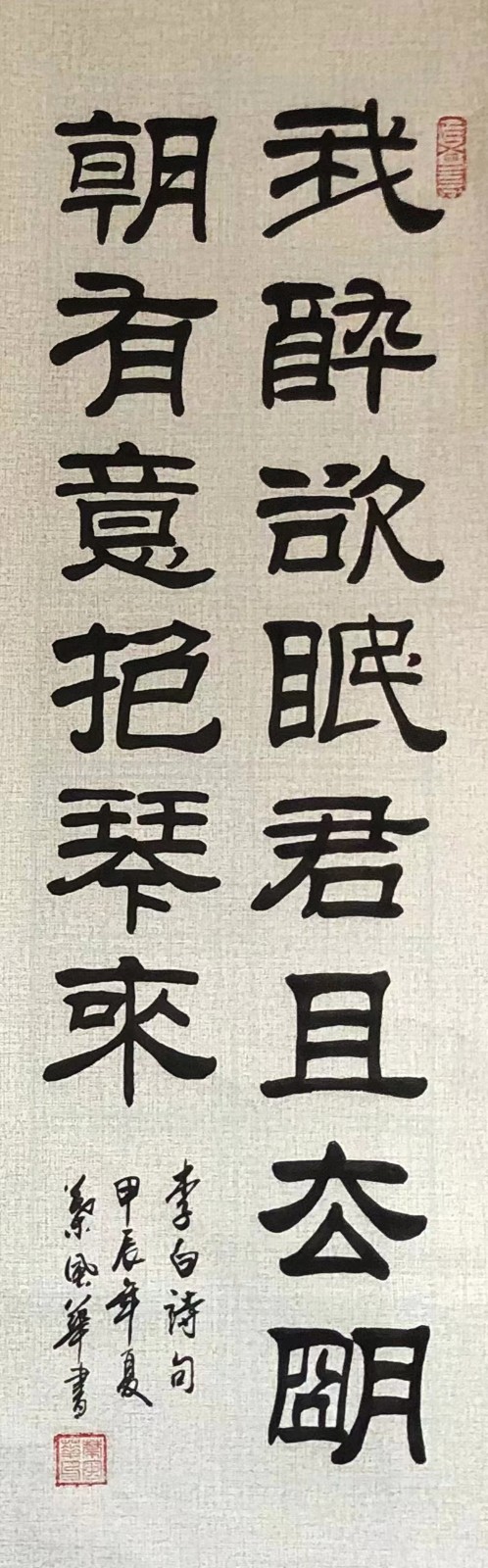 少年时期的叶风华,便展现出对书法的超常执着。物资匮乏的年代,他以沙盘为纸、树枝为笔,在起笔收锋间体悟唐楷的法度与正气;湛江濒临南海的地域特质,也悄然塑造着他的审美取向 —— 海风的豪迈与椰林的秀逸,在其早期作品中已显露出刚柔并济的雏形。这种根植于乡土与传统的启蒙,让叶风华的书法从起步阶段就避开了 “为技而技” 的误区,始终保有对文化根魂的敬畏与坚守。
