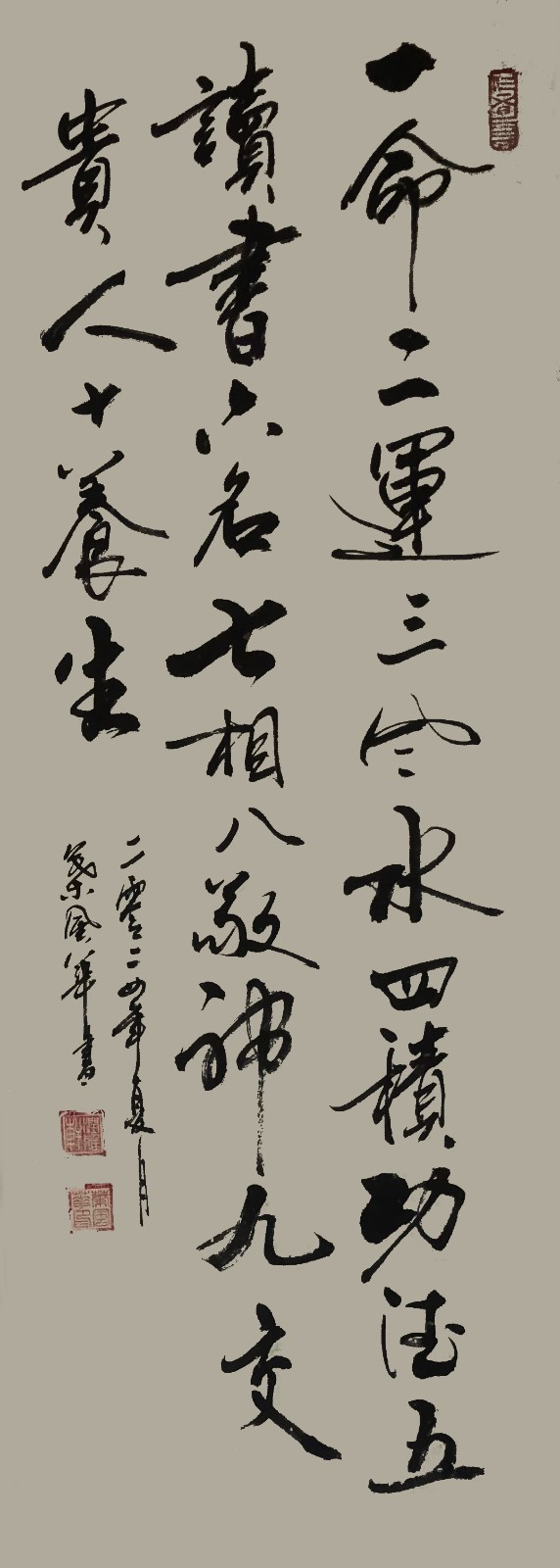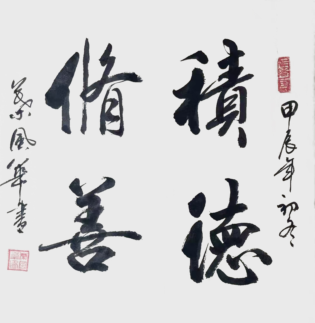 成年后,叶风华投身工作岗位,但对书法的热爱从未停歇。他利用业余时间遍访岭南书法名家,系统研习二王帖学体系,在《兰亭序》的飘若浮云与《圣教序》的雄健流丽中,探寻晋人尚韵的艺术精髓。这段 “边工作、边求学” 的岁月,虽充满艰辛,却让他实现了从 “业余爱好者” 到 “专业探索者” 的身份跨越,也让他深刻理解了 “艺术源于生活,高于生活” 的真谛 —— 基层工作的实践经历,为其书法注入了贴近民生的烟火气与服务社会的责任感。