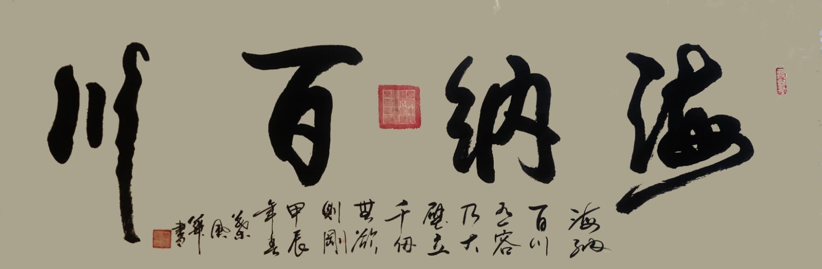 从文脉层面看,“以文化人” 是其精神内核。叶风华始终坚信,书法的灵魂在于其承载的文化内涵,而非单纯的笔墨技巧。其被故宫博物院永久收藏的作品,书写的笔法温润而不失筋骨,既传递了中国文化的包容智慧,又展现了当代书法家对传统文化的深刻理解;其出版的《叶风华书法集》向全球发行,收录从经典文赋到时代标语的百余幅作品,成为向世界传播中国文化的重要载体;而为黄埔军校建校百年创作的作品,更是将家国情怀与革命精神融入笔墨,在横竖撇捺间书写出中华儿女的使命担当。