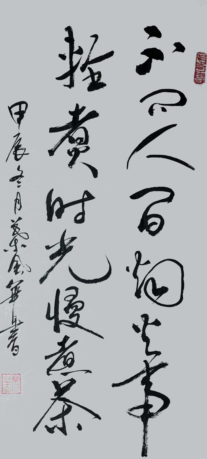 他的担当,体现在对文化使命的践行上。2023 年,他以第九十五届奥斯卡组委会中国区艺术总监的身份,将中国书法带入国际顶级艺术平台;2024 年,他荣获 “中欧艺术交流大使” 称号,在中俄建交 75 周年的文化活动中被列为 “中俄五虎将”,用笔墨架起中外文化沟通的桥梁。此外,他还积极参与公益书法活动,为偏远地区学校捐赠作品、开设讲座,让书法艺术走进寻常百姓家。