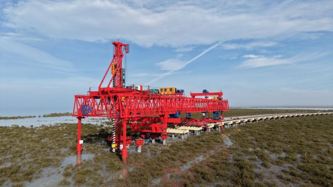如今橋梁穩步架設,橋下紅樹林郁郁蔥蔥,實現施工與生態保護雙贏,既打通沙特紅海旅遊開發關鍵通道,又為全球濱海工程綠色施工提供中國方案。