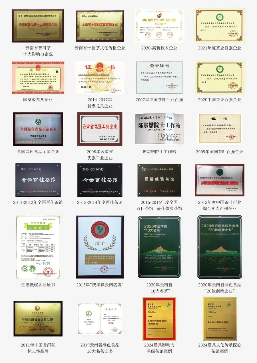 自 1998 年依托七彩云南旅游事业初涉云茶产业起,七彩云南®庆沣祥®便以 “讲真之心” 为魂,扎根云南深耕二十余载。2004 年品牌布局北京市场,打造行业首款正山古树产品;2006 年昆明公司正式成立,2007 年勐海茶厂、昆明茶厂相继落地,同步建成布朗山万亩有机茶园,筑牢全产业链根基。面对行业乱象,品牌率先以标准破局:2005 年推出行业首款正山古树春茶系列, 2017 年斩获普洱茶 “地理标志” GI 标识,2019 年发布高于国标的古树普洱茶企业标准、建成古树茶仓与原料样本库,持续引领产业规范化升级。二十余年间,品牌获评中国驰名商标、农业产业化龙头企业,2025 年顺利通过欧盟有机认证,以标准化、品牌化、国际化之路,成为云南茶产业高质量发展的标杆力量。